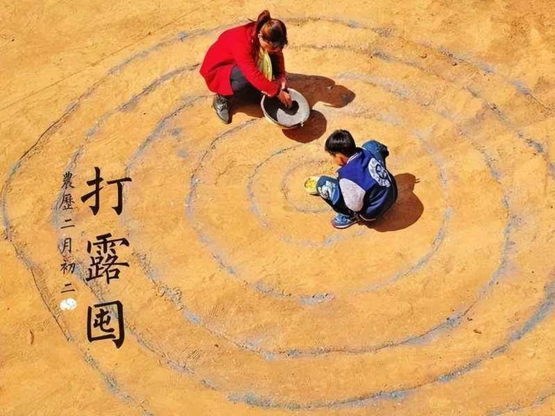这一习俗跟正月二十和正月二十五的小填仓节,大填仓节有很多类似的地方,基本上都是用草木灰在自家院子里或者门口的空地上花圈,撒一些粮食,寓意当年的大丰收。