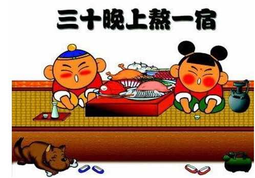 北方人的习惯,除夕晚上要吃饺子。按老习俗,早在除夕前一天,也就是农历二十九,家里就得开始包饺子了,除夕晚上和大年初一早上都要吃饺子。这两顿的饺子比较特别,要随机包进硬币、糖果、年糕、红枣、栗子等吉祥物,吃到硬币代表来年不愁钱,小孩子吃到年糕会长个,吃到糖果则预示着甜甜蜜蜜。