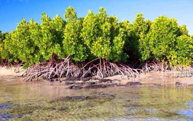 北海山口红树林是国家级自然保护区,面积8000公顷,1990年经国务院批准建立,主要保护对象为红树林生态系统。红树林植物最让人奇怪的是其独特的胎生繁殖方式,种子可以在树上的果实中萌芽长成小苗,然后再脱离母株,坠落于渡船泥中发育生长,小苗掉在海水中即使被海湾冲走,也能随波逐流,数月不死,一遇泥沙,数小时后即可生根成长。