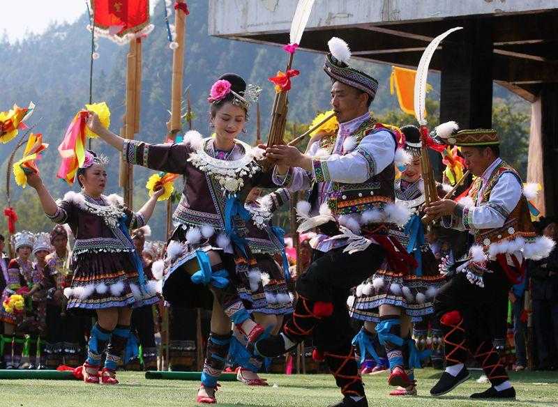 2月20日,广西融水苗族自治县洞头镇洞头村,苗族群众跳芦笙舞。龙林智 摄
