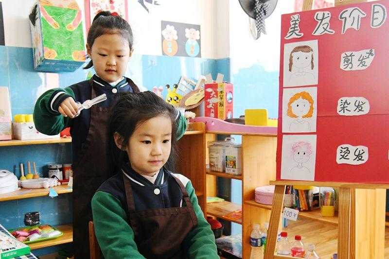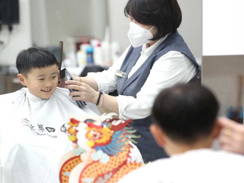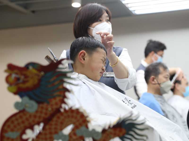 2月21日,河北省邯郸市广平县一家幼儿园,小朋友体验“二月二”理发。程学虎 摄