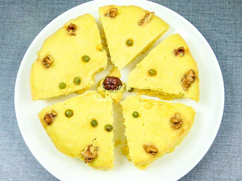 3.取出电蒸锅,锅内加入清水把小盆放入锅内,凉水在烧开的过程让发糕2次发酵,水开以后开始计时25分钟,开始用大火中间转为中火,关火等3分钟取出蒸好的发糕,用刀切成小块就可以食用了。