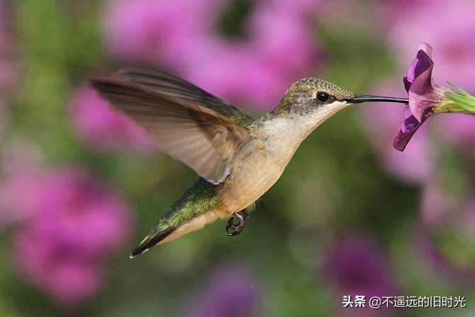 无论做什么事情,蜂鸟都是以快制胜。在动物界中,它们的新陈代谢最快,心脏每分钟跳动1260次,另外每秒可以拍打翅膀70次!我们真难想象蜂鸟的速度究竟有多快。这种难以置信的速度使蜂鸟成为唯一一种可以在空中盘旋的动物。它甚至还有一项绝技,就是能倒飞。在人类设计的飞行器中和它们相匹配的是直升机。