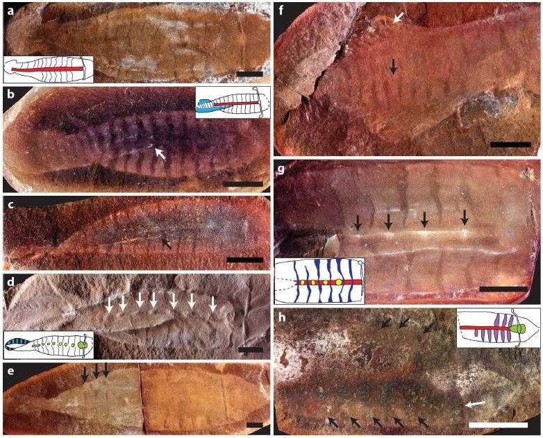 一个生物无法给他下定论,那将是科学家的耻辱,所以在2014年,古生物研究人员成立了一个专门研究塔利怪物的小组,在通过现有的1200块塔利怪物化石的研究中,研究人员在某一块化石上发现了一条从头到尾贯穿的一个带状物,因为之前也在其他的化石上看到过这条带状物,研究人员认为这是塔利怪物的消化道,可偏偏发现了真正的消化道,那么这条带状物是什么?是脊索吗?对一定是脊索,这是一条原始的脊索。这下研究人员开始将塔利怪物往脊索动物方向去匹配。