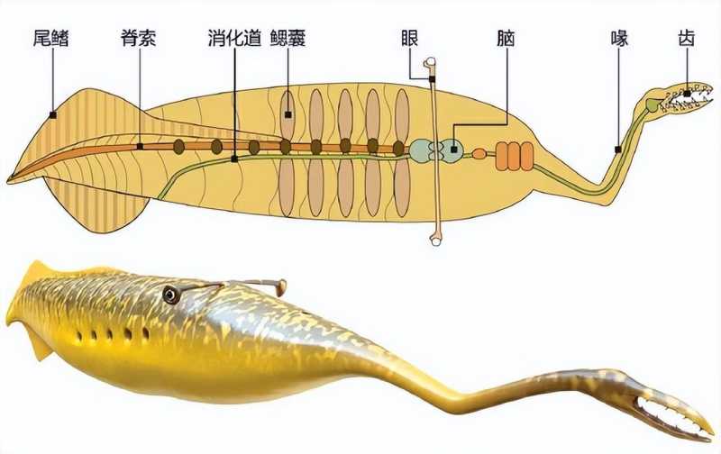 可偏偏塔利怪物不给我们这个机会,一篇研究文章的出现,彻底将之前所有的研究定论全部击碎,这篇文章提出了一个非常致命的论点:凡是脊椎动物,从未出现过从头连到尾的脊索,而塔利怪物从眼睛到尾巴都被贯穿了,头部区域有从身体延伸出来的分节,这完全不符合脊椎动物的特征,怎么就能给它归类为脊椎动物呢?