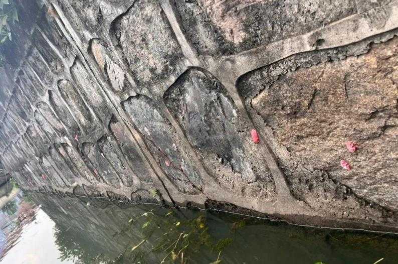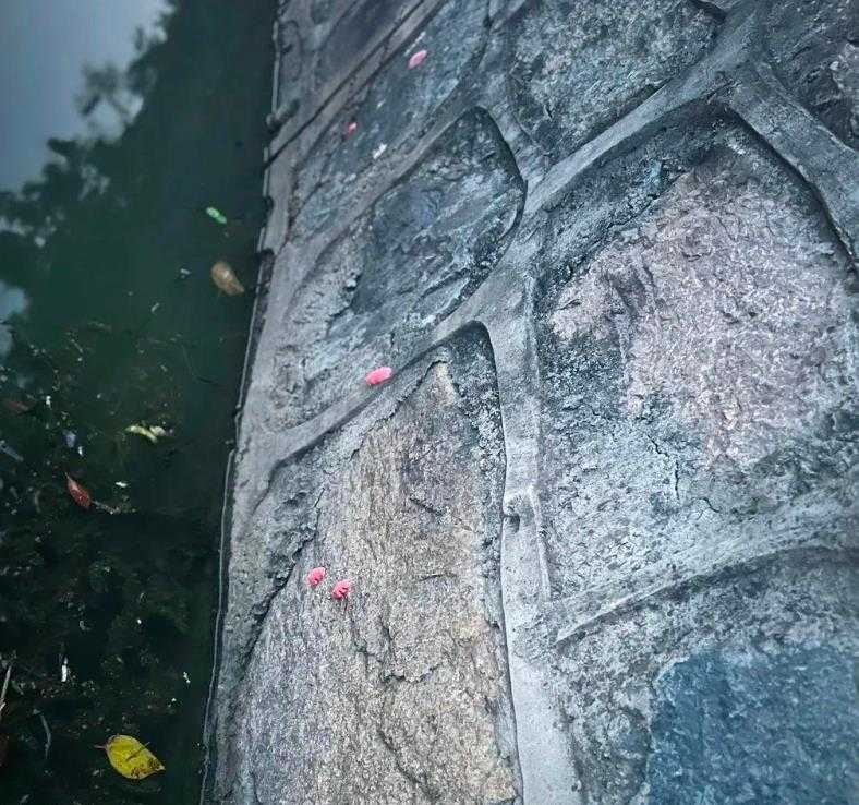 一、发现不明生物:余女士在家附近的河道边发现了一片粉色的东西,经过仔细观察后发现是福寿螺的卵。