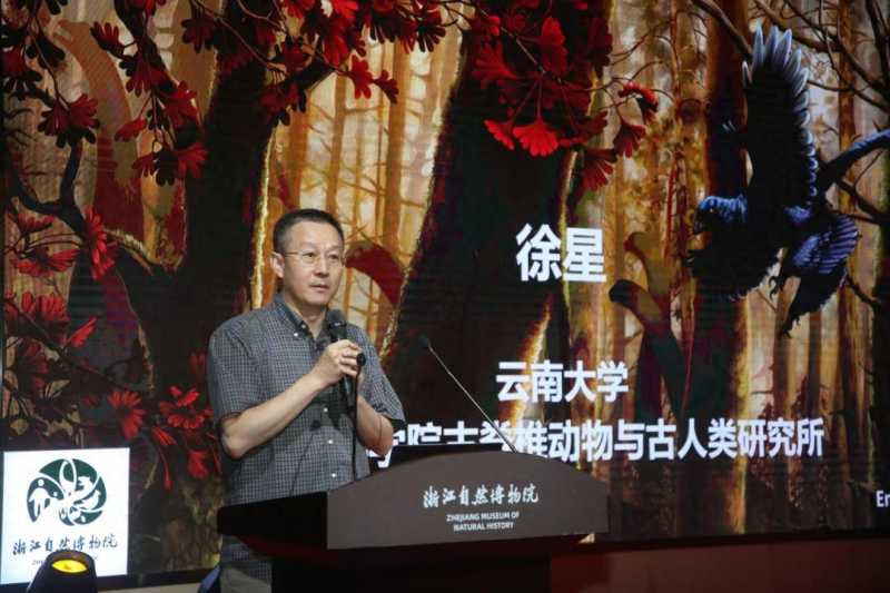 云南大学古生物研究院学术院长、教授,中国科学院古脊椎动物与古人类研究所研究员,著名古生物学家徐星博士作《寻找飞向蓝天的恐龙》讲座。他讲述了来自中国的恐龙化石,如原始中华鸟龙化石、中国鸟龙化石、小盗龙化石、奇翼龙化石等是如何填补恐龙向鸟类演化的缺失链条。他通过亲身科研经历,向观众展现了中国古生物学家不屈不挠、求真务实的科研精神。