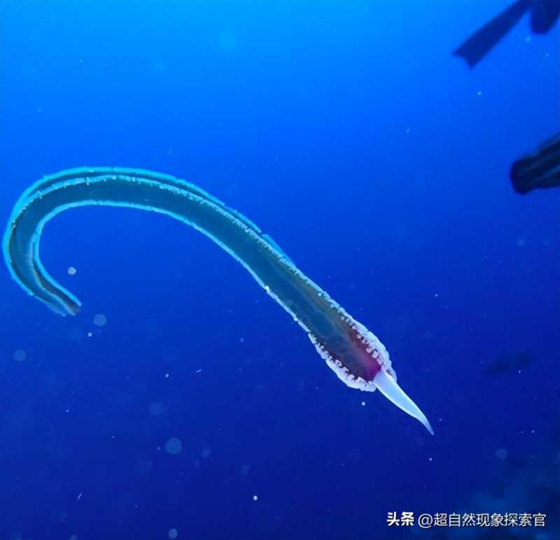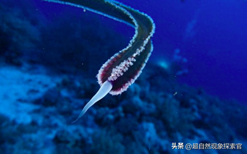 这种海洋生物没有眼睛、耳朵或嘴巴,它就像一根尖头的橡皮管,但它在水中移动。各种说法中有外星人、各种蠕虫,甚至还有植物,但最可信的似乎是“管子”属于水母——不过,我们不是在谈论一个完整的个体,而是在谈论它的触手。