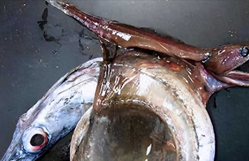 弱肉强食,贪吃带鱼将自己撑破肚子的鱼类。