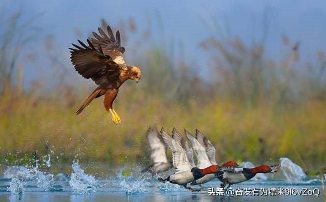 33、生死时速,死神从空中降临,野鸭子们奋力逃跑,摄影师用镜头将这一时刻定格了下来。