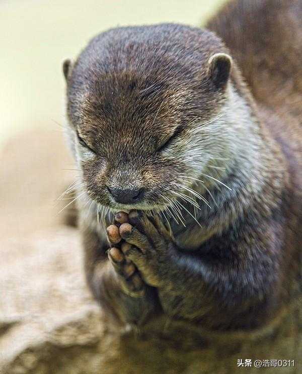 10、这只水獭的表情和动作很奇怪,像是在祈祷一般。