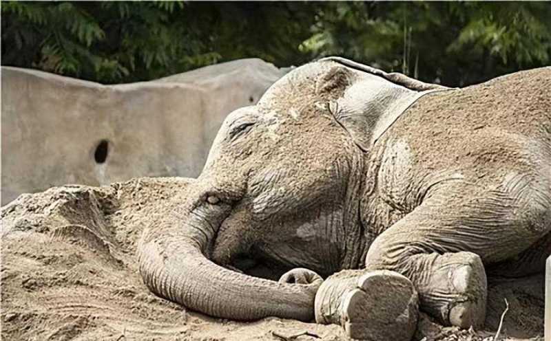 32、大象一般站着睡觉的比较多,有时候也躺着睡,但无论是站着还是躺着,它都会把鼻子卷起来以防止蚊虫之类的昆虫趁机钻进去。