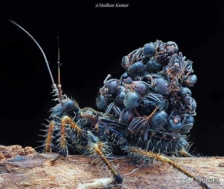 04、负蚁蝽是可怕的猎食者,名副其实的蚂蚁杀手,它习惯于把自己的猎物背在背上。