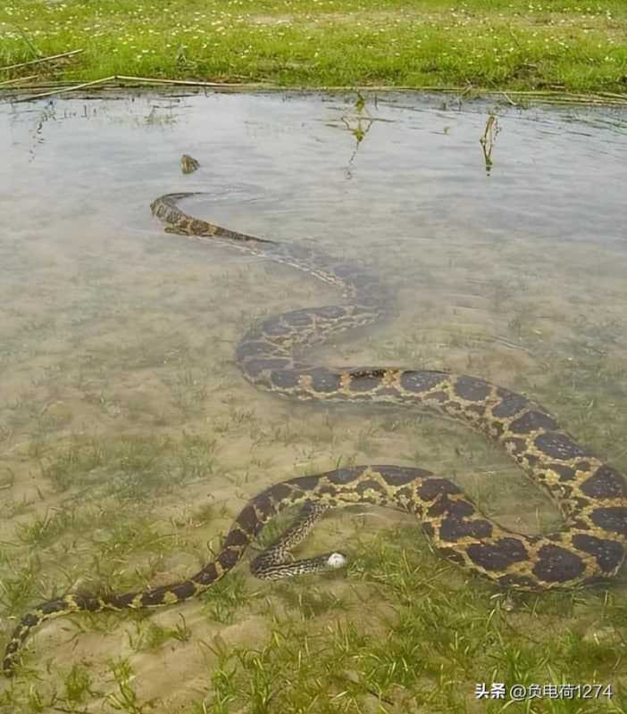 34、一条黄色的大蟒蛇正在水中生孩子。真是难得一见的场面。