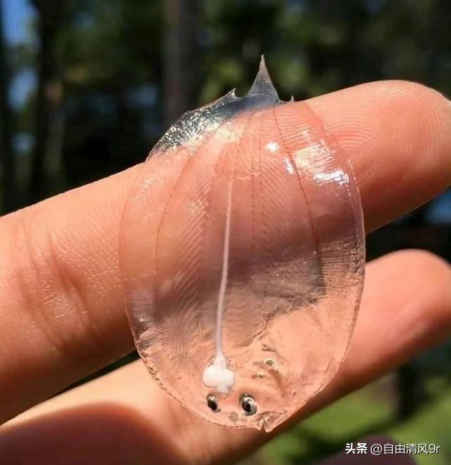 30、一条透明的小比目鱼,才有两根手指大小,在阳光下,它通体透明,只看得见从脑部一直延伸到尾部的脊髓。