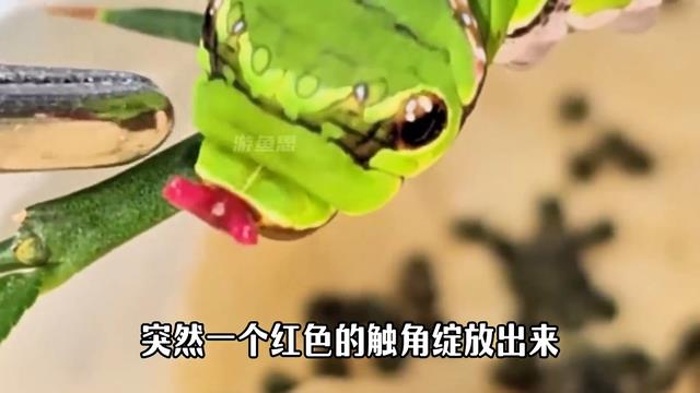 为了探究它是否和有触角,我用镊子一点点的触碰它,但是它好像并不感冒。突然一个红色的触角绽放出来,并一点点的变长变大。触角的作用主要是散发恶臭,毛毛虫用臭味来驱赶捕食者,而且这个触角与生俱来,即便是毛毛虫初期阶段也有着大触角来驱赶外敌。