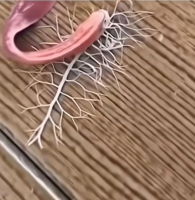 ——这些丝状物,就像科幻电影里边那种外星寄生生物一样迅速在桌上蔓延开来,我甚至一度认为,这视频会不会是电脑特效做的,但后来我来回翻看了很多次,能确定这视频没有经过处理,绝对是真实的,那这东西到底是什么呢,后来我在评论区找到了答案,它也是一种已知动物。