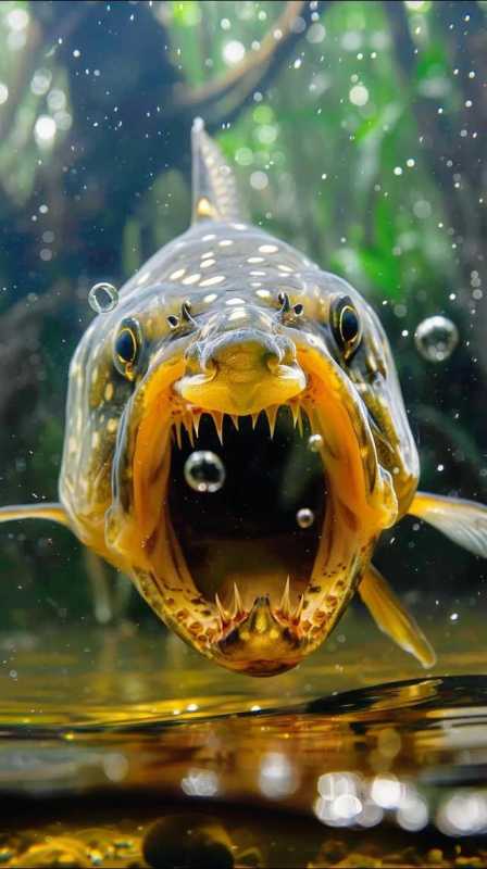 这种鱼属于金眼鲷目,样子看起来极具威协性,常栖息在深度500一2000米处,水压大得可怕,温度接近冰点。它有大尖牙,有恐怖的外表,被誉为“食人魔鱼”。
