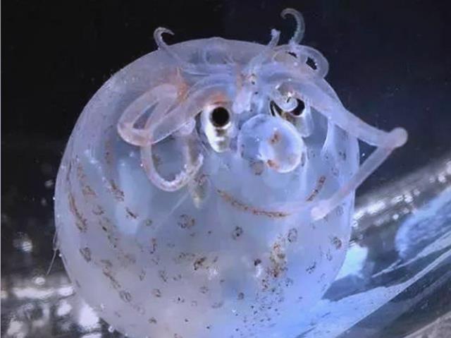 体长10厘米,分布在太平洋海域,它利用发光器吸引猎物,再用带吸盘的触腕快速捕捉,依靠透明身体实现“隐身”。