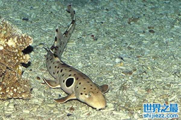 科学家在澳洲海域发现多种会走路的新品种鲨鱼,图为其中一种──肩章鲨(Hemiscyllium ocellatum)。