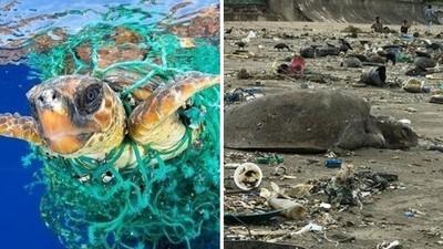 野生动物救援队和环保人士获报到场,估判大量的海龟群在海中就已受困在50吨的垃圾中,接着随海流潮汐被冲上岸,垃圾量之大…蔓延岸边好几公里!环保人士仔细观察被冲上岸的垃圾,发现有大量的废弃塑料瓶、弃置渔网、钓鱼用具、浮标,以及大量的碎片残骸,全都是无法分解的人为垃圾。