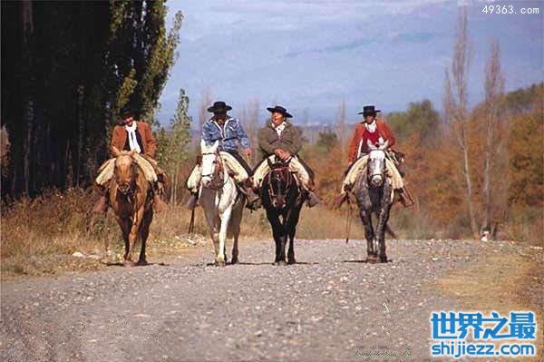 阿根廷:阿根廷潘帕斯平原绿草茵茵,是游牧民族高乔人的家。他们从1700年起在这裡生活,熟悉土地,骑术精湛,在独立战争和内战裡成为最优秀的骑士。