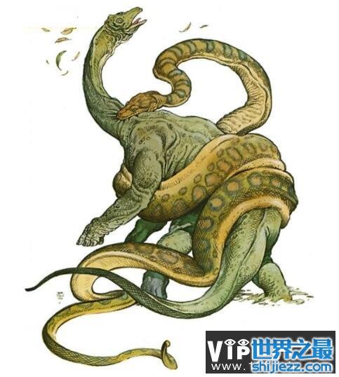 古杯蛇的颜色与古杯差不多,所以得名为古杯蛇,为始新世一种巨型海蛇,但其性情却不像古杯那么冷静呆板,而是极具攻击性的。在很多传奇故事中,这种远古巨型海蛇的威力让人胆寒,据说它翘起头部,比海中航行的桅杆还要高,露出狰狞的牙齿,让人不寒而栗。