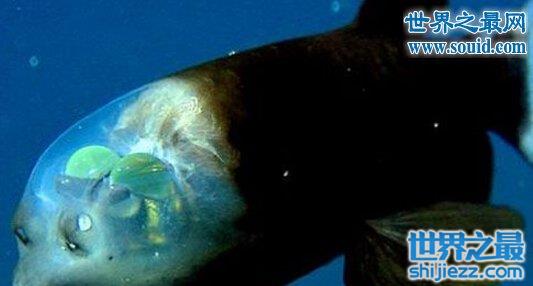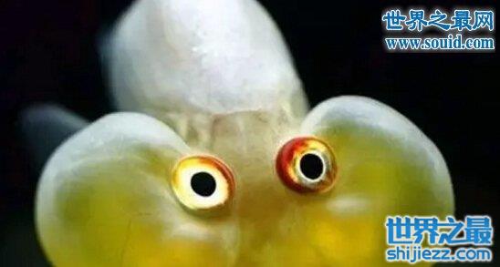 桶眼鱼也被称为幽灵鱼,这类幽灵鱼是外表奇特的小体型深海鱼类,属后肛鱼科。发现于大西洋、太平洋和印度洋的热带海域中。玻璃头桶眼鱼又被称为Rhynchohyalusnatalensis,它有两个如水桶形向上看的大圆眼睛,可以帮助其发现隐藏在暗中的猎物或捕食者。它的头部两侧还各有一只银色眼睛,就像镜子似的的透镜和视网膜,可观察到身体下面和身后的情况。这些眼睛让它看起来非常怪异。