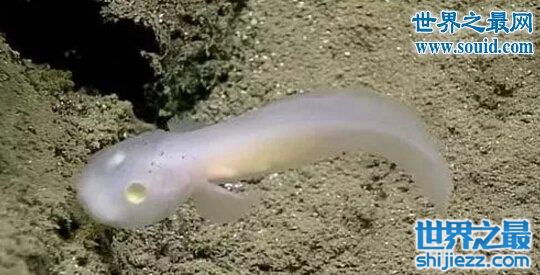 过裸鼬鱼科中的幽灵鱼。NOAA的渔业生物学家Bruce Mundy表示:“幽灵鱼的身影真是不同寻常的景象。”裸鼬鱼科属于鼬鱼目,这个分类下面还包括底栖动物鳕鳗(cusk eel)。人类已知的、生活地点距离海面最深的是:幽灵鱼。人们曾在波多黎各海沟距离海面8370米深的地方,将它拖了上来。人类发现大部分幽灵鱼的时候,多半是在拖网作业或疏浚作业中顺带将它抓了起来。