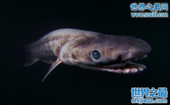 皱鳃鲨又名拟鳗鲛,是鲨鱼中最原始的一种,无亚种分化,有“活化石”之称。身体两侧有六条鳃裂,鳃间隔延长而褶皱,且相互覆盖,所以命名为皱鳃鲨。皱鳃鲨鳃裂之所以比其他鲨鱼多,很可能是因为他们大多栖息于深海环境,而深海环境的氧气浓度比较低,因此需要比较多的鳃裂来进行气体交换。