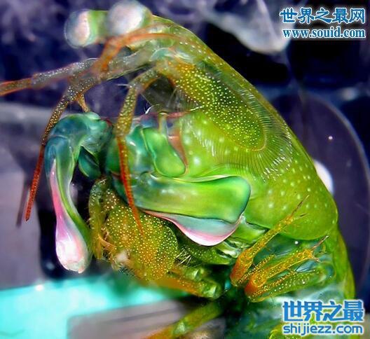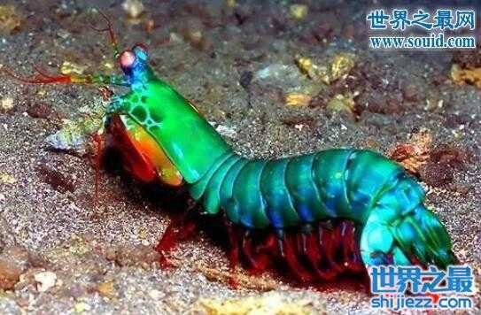 绿虾蛄(雀尾螳螂虾)本种虾体色褐绿,身上布满白色横纹,胸前大螯钩有很大的弹出力量,人们如用手捕捉会严重受割伤。夜行性,常危害水族箱中的鱼。