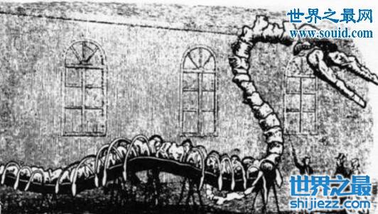 1817年8月14日,许多人在美国马萨诸塞州格洛斯特港一带见到一条巨型海蛇出现。新英格兰林奈学会组织了特别委员会调查此事,录取了看到巨型海蛇人的宣誓证词。据证词称,巨型海蛇“头像一个四加仑的桶那么大,身体有琵琶桶那么粗,身长至少四十英尺。”在1845年,亚伯特寇区得知在阿拉巴马州发现的巨大骨头,后来被拼成了一具完整的骨骼的故事。他后来拼凑出一具长114英呎的巨型海蛇骨骼,并且让它在纽约与欧洲来公开展览。这些骨骼最后毁于1871年的芝加哥大火。1848年10月11日,英国军舰戴达拉斯号从东印度群岛返回普利茅斯港后,该舰呈交了一份报告。