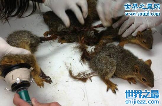 2013年6月一个“松鼠王”由6只活松鼠组成的鼠王在加拿大萨斯喀彻温省里贾纳被发现,在兽医的帮助下被分开。