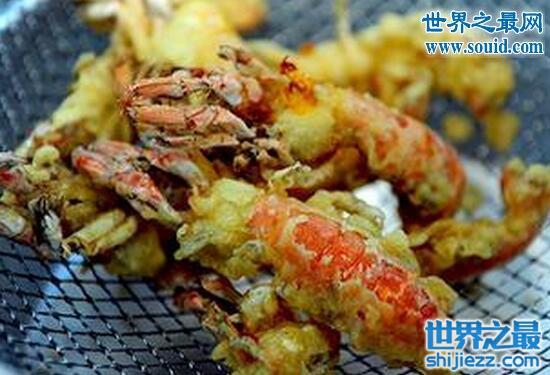天后宫前一带的海产小吃店几乎都会有的一道料理。选用的美食奥蝼蛄虾是价格最低廉的公美食奥蝼蛄虾、已经爆卵的母美食奥蝼蛄虾,将上述的美食奥蝼蛄虾裹粉,油炸,并加入九层塔、胡椒盐等香料,一道美味可口的酥炸美食奥蝼蛄虾便完成了。