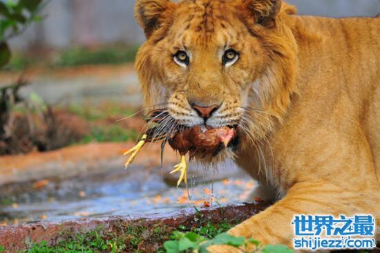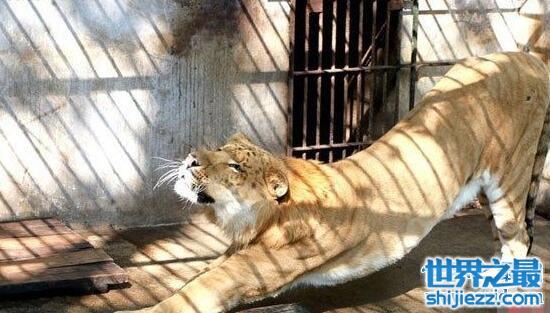 狮子被誉为草原之王,而老虎则被称之为森林之王,身为这两个王者的后代,狮虎兽自然也继承了双亲的某些逆天的特征,除此之外,狮虎兽的体型比它的双亲的体型都大。