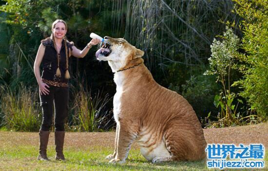 在迈阿密动物园中,有一只名叫“赫拉克勒斯”的狮虎兽,据了解,它已经长到3.7米长,体重超过了500公斤!当动物园的驯兽师奇娜·约克给“赫拉克勒斯”喂食时,尽管她站在了一个4米多高的支架上,但“赫拉克勒斯”仍轻易地站起了整个身子,并抓取到了奇娜手中的食物。狮虎兽图片也看着着实吓人。