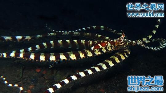 还有一种章鱼,长相酷似拟态章鱼,但不具备拟态章鱼那种超高的生物拟态本领,它叫Wonderpus。 他们身上的花纹与拟态章鱼很象,只是呈棕色。这种章鱼是拟态章鱼的近亲。但是本领没有拟态章鱼的高,下次大家发现这类章鱼的话可不要弄错了。