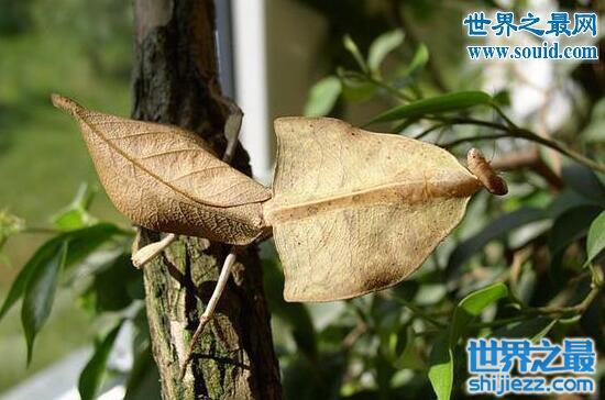 外形酷似一片枯叶。头三角形且活动自如,复眼大而明亮,触角细长,有枯叶状扩张的背板,颈可自由转动。体色棕色,有模仿枯叶的深色和浅色斑点。它的胸部恰似半片枯叶,一对翅膀收拢后,看上去就更像一片完整的枯叶。