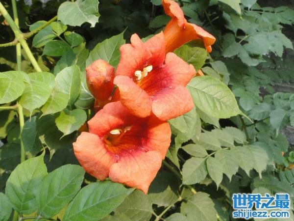 厚萼凌霄是一种爬藤生长的开花植物,夏天阳光灿烂,它是一种比较容易生长的开花类爬藤花卉,也能够养成优美的盆栽,喜欢较为充足的光照,每天有6~8小时以上的直射光才好开花。