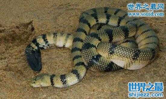 艾基特林海蛇:生活在热带海域地区,多在澳大利亚海湾浅水带。它长着一张大嘴,其躯干略呈圆筒形,体细长,后端及尾侧扁平。它的毒性比眼镜王蛇还要大,如果被它咬一口,数十分钟内就会死亡。