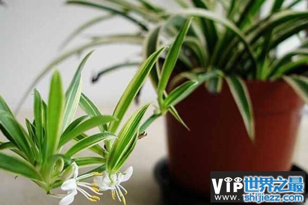 吊兰是原产于南非的一种著名盆栽观赏植物,因其有着极强的空气净化能力,所以也被称为“空气卫士”,吊兰喜欢半阴的环境,对生长环境有着很强的适应能力,而且比较耐旱,对土壤的要求也不高,所以很适合养在室内。