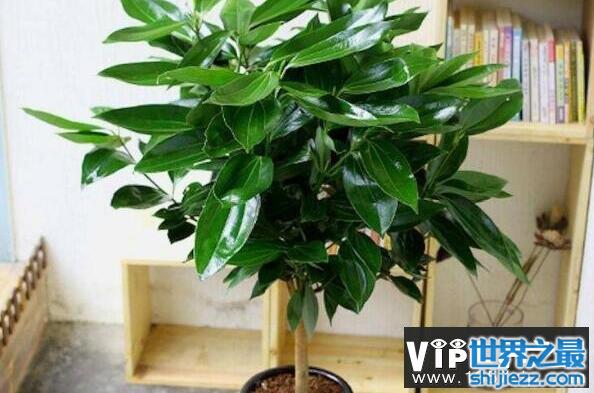 橡皮树是原产于巴西和马来西亚地区的著名盆栽观叶植物,其株型美观,叶片颜色青翠欲滴,非常惹人喜爱,很适合用来装饰室内环境,橡皮树对温度、光照的要求也比较低,很容易养好。