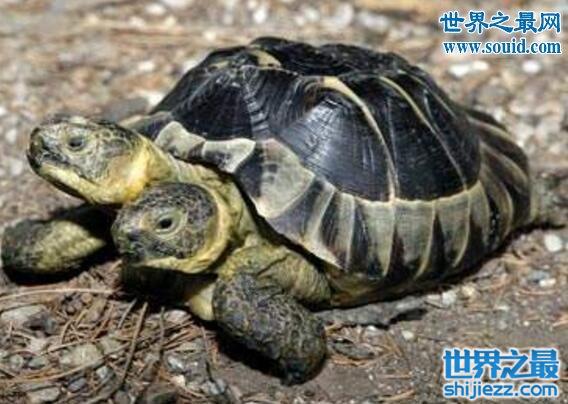 图中这只双头龟发现于美国佛罗里达州一家宠物商店中。宠物商店的主人凯茜是从佛罗里达州一名男子手中得到这只双头龟的。当时,该男子携带这只生病的双头龟来到凯茜的商店寻求救助,凯茜最终帮助它恢复了健康。通常情况下,像这种严重畸形的乌龟在出生后不久就会死亡。但是凯茜却认为,这只双头龟尽管可能活不到75岁到100岁的平均年龄,但它应该可以存活好多年。不过,这只可爱的双头龟最终却被小偷从宠物商店中偷走了。