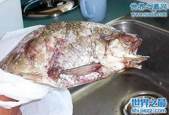 这条怪异的鱼发现于加拿大阿萨巴斯卡湖中,是一种淡水鱼。它重约2.5公斤,长有两张嘴,上下各一个。