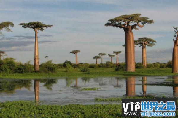 猴面包树主要分布在马达加斯加地区,植株有一根粗壮的肉质树干,其中可以储存大量的水分,据说超过十万升,在干旱的沙漠环境下可以顽强的生存很长时间。