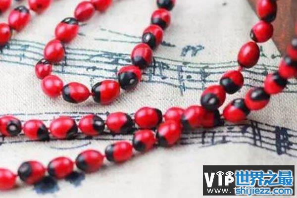 鸡母珠的产地非常广,在广东、广西、云南等热带亚热带地区都有种植。不仅在我国有流行佩戴这种手链,而且有部分宗教国家也将鸡母珠手链作为他们的念珠来使用。不过不要看鸡母珠非常的鲜艳喜庆,但实际上它的毒性是很强的,而这种世界上最毒的种子的毒素是世界十大毒王植物之一的蓖麻毒的百倍。