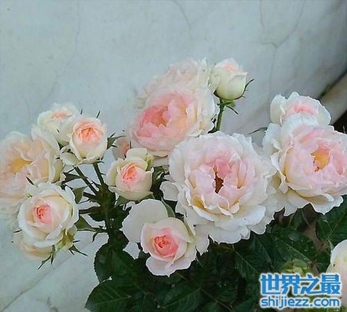 白桃妖精是特别萌的一款月季品种,开花又多又勤快,株型非常好,而且不高大,花瓣是很柔软的白粉色,但白桃妖精夏花很丑,到秋天后它会美给你看的。
