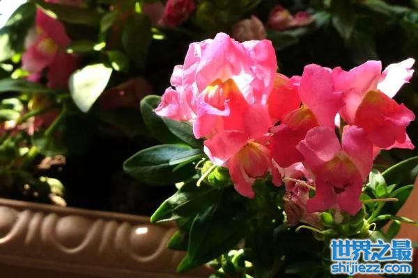 金鱼草的花朵造型奇特,形似金鱼,花朵的颜色丰富,不同花色的风水寓意不同,金色花朵有聚财的寓意,紫色花朵有家庭和睦、幸福美满的寓意。