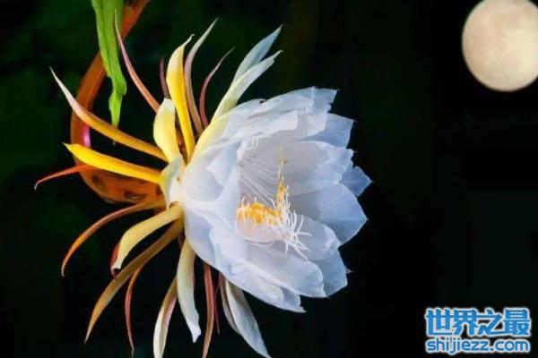 昙花是附生肉质灌木植物,茎干基部木质化,会在6-10月份的夜晚开放,每次只会开花4小时,有月下美人的称号。