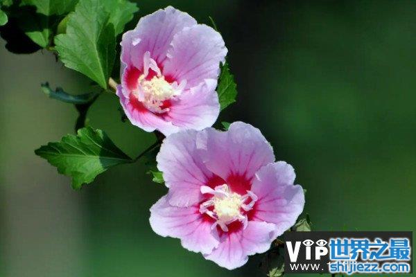 木槿花是锦葵属落叶植物,树姿挺立生长且分枝较多,花期时间在秋季9-11月份,淡紫色或是紫红色的花朵单生在叶腋间。